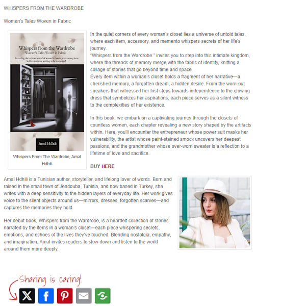 I’m proud to share that my personal essay, "The Stories We Wear: How a Wardrobe Became My Writing Desk," has been published on Women Writers, Women’s Books. In this piece, I open the door to the journey behind my debut book, reflecting on how everyday items and forgotten clothes helped me reconnect with my voice as a writer.