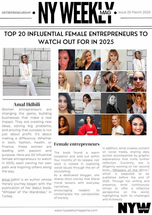 Honoured to be featured in NY Weekly as one of the Top 20 Influential Female Entrepreneurs to Watch in 2025. This recognition highlights the journey of Whispers from the Wardrobe and the upcoming release of Whispers of the Mirror.